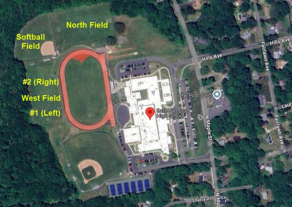 Rec League teams competing in the Seniors (grades 3-5) division will play their games at the East Hampton High School. Please see the directions for accessing the playing fields at the high school in the Travel League Fields section directly below for more details.
